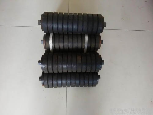 緩沖托輥安裝在輸送機受料段的下方,減小落料時物料對輸送帶的沖擊,以廷長輸送帶的使用壽命.緩沖托輥的間距一般100-600毫米。