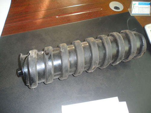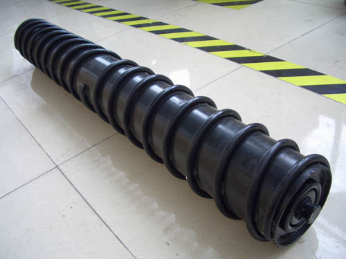 螺旋橡膠托輥是引進(jìn)國外先進(jìn)技術(shù),針對(duì)化工行業(yè)固體粘濕物料輸送時(shí)存在嚴(yán)重問題開發(fā)研制的科技成果.我公司專業(yè)從事皮帶機(jī)螺旋橡膠托輥的制造和銷售,該產(chǎn)品在國內(nèi)享有千家的用戶,還遠(yuǎn)銷東南亞各國。該產(chǎn)品的問世,從根本上解決了帶式輸送機(jī)普遍存在的腐蝕,粘輥、膠帶跑偏和撕裂等嚴(yán)重問題。具有結(jié)構(gòu)新穎、安裝維修方便、自定中心輸送平穩(wěn)、不粘輥、噪音小,能耗低及延長(zhǎng)膠帶使用壽命特點(diǎn)。填補(bǔ)了國內(nèi)空白,并被多家部屬化工設(shè)計(jì)院納入通用設(shè)計(jì)規(guī)范。